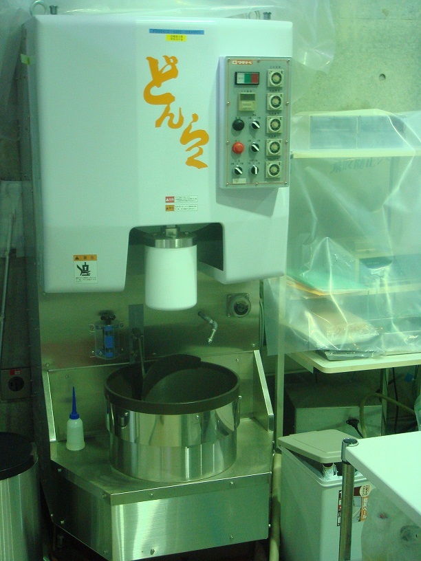 餅つき機です。手返しは自動、ウス回転数はダイヤル操作で可変可能です。