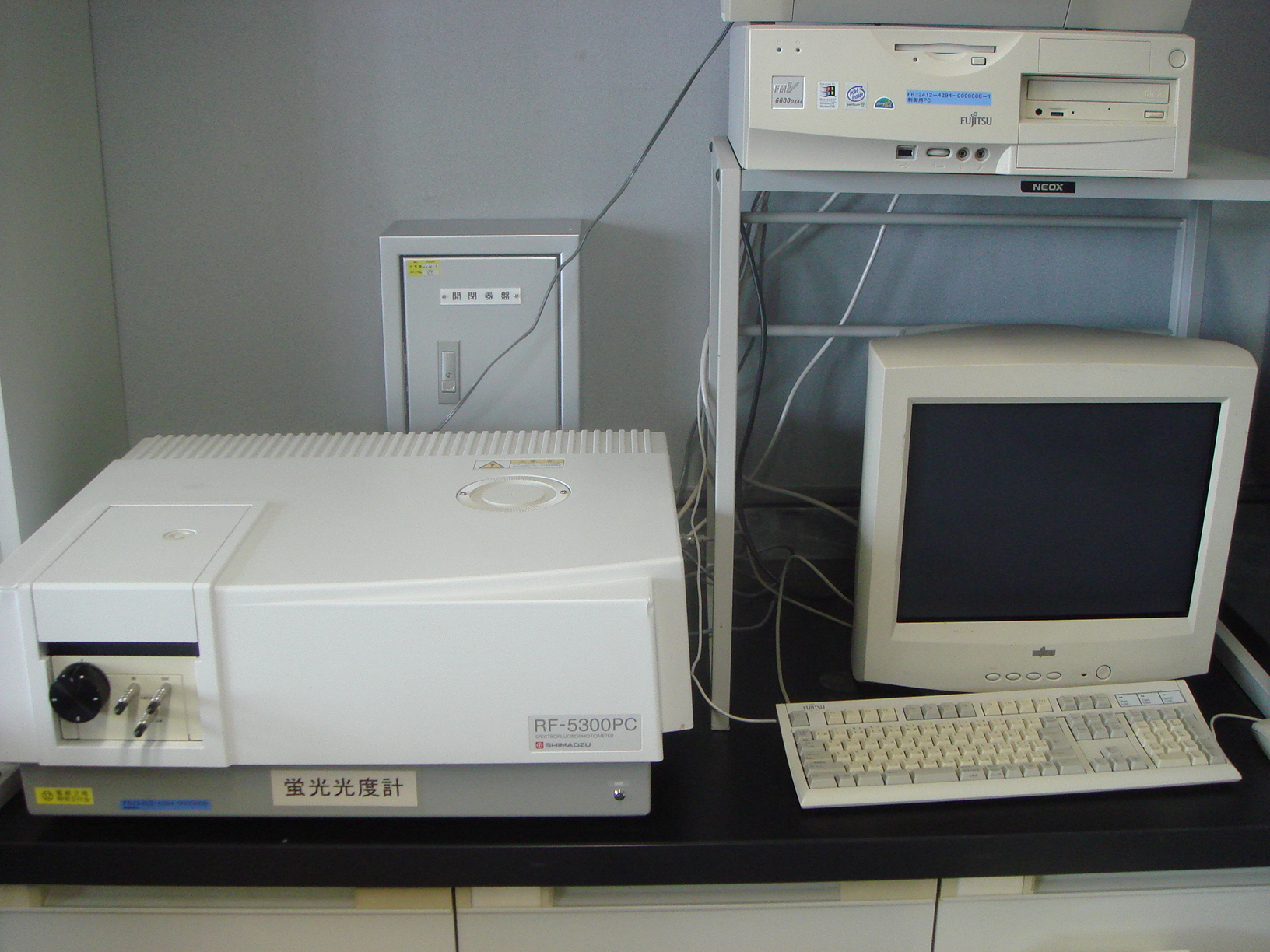 - 蛍光物質からの蛍光強度やスペクトルを測定して定量、定性分析を行なう。