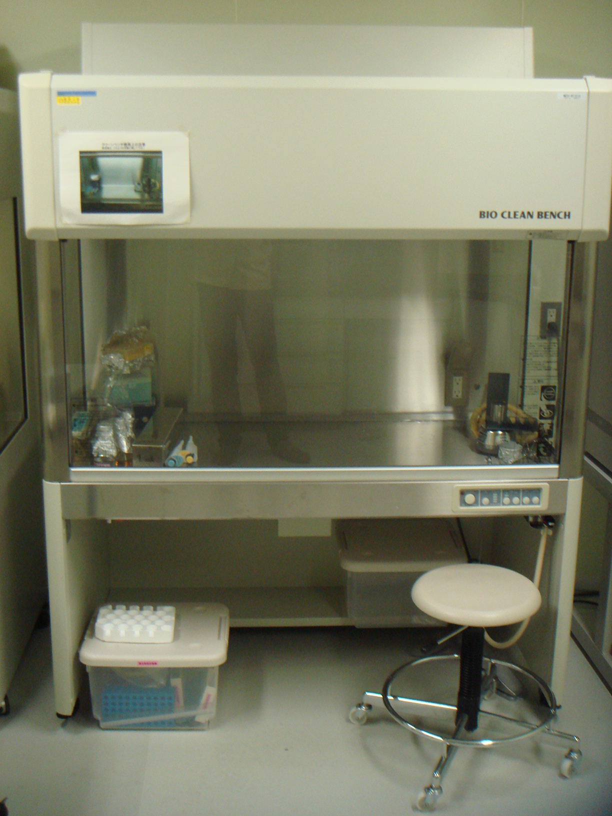 - 微生物検査の試料調整や培地製作に使用する作業台(バイオクリーンベンチ)です。