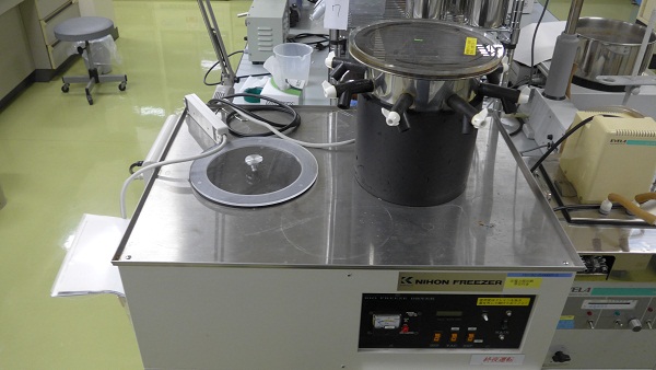 - 常温の大気中で変質しやすい試料を凍結後真空中で水分を蒸発させ乾燥させる。