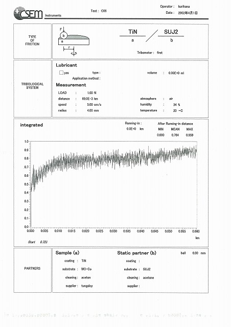 - 荷重:1 N、2 N、5 N、10 N回転速度:1 rpm〜500 rpm試料寸法:ボール φ6 mm、ディスク φ60 mm×10 mm以下摩擦半径:40 mm以下