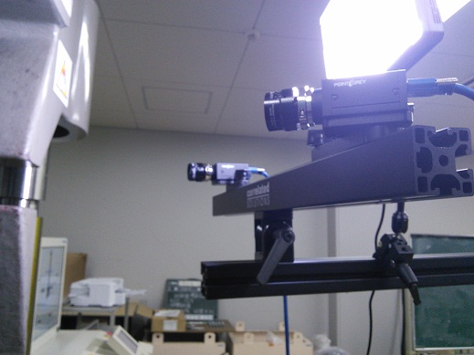 - 「デジタル画像相関法」という画像処理技術により、非接触でひずみ(変形)などを測定する装置です。代表的な測定方法である「ひずみゲージ測定」が点測定なのに対し、本装置では全視野測定が可能です。 製品の強度評価や、材料試験などに利用できます。