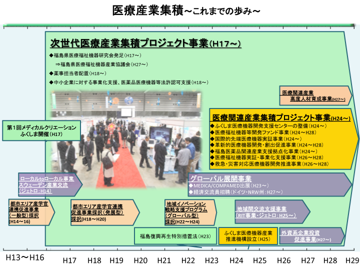 福島県は、全国有数の医療機器生産県であり、福島県立医科大学をはじめ日本大学工学部や福島大学、会津大学においても医療機器関連の研究開発が熱心に進められております。