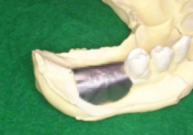 歯槽膿漏などで歯の周りの骨が溶けてしまった場合に、あごの骨(顎骨)や歯を支える骨(歯槽骨)の再生のためのチタン製の膜を開発し、平成28年度に薬事承認を取得しました。