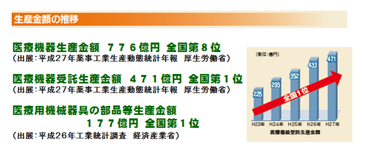 米系大手医療機器メーカーであるジョンソン・エンド・ジョンソン(株)、日本ベクトン・ディッキンソン(株)の国内主要輸入・生産拠点を有するほか、ノボノルディスクファーマ(株)、ハクゾウメディカル(株)、富士システムズ(株)、トミー(株)など70を超える医療機器製造業者が操業しています。