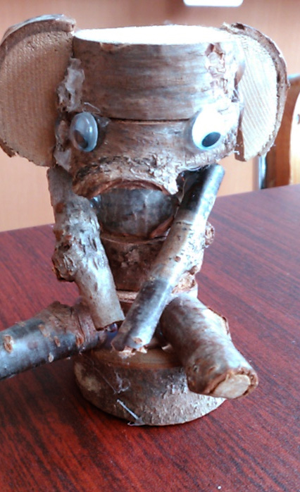 本校では、木工工作を体験させていただきました。さまざまな材料が準備され、そこからイメージをを広げながら子どもたちも楽しんで「森のいきものたち」を作ることができました。