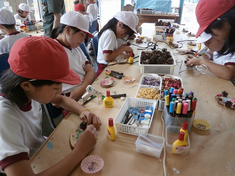 森の材料が豊富なところがうれしいです。しかし、低学年の子どもたちにはその材料を接着する方法が個別対応だと大変に感じたので、ボンドの使い方などのパネルなどがあるとスムーズではないかと感じました。