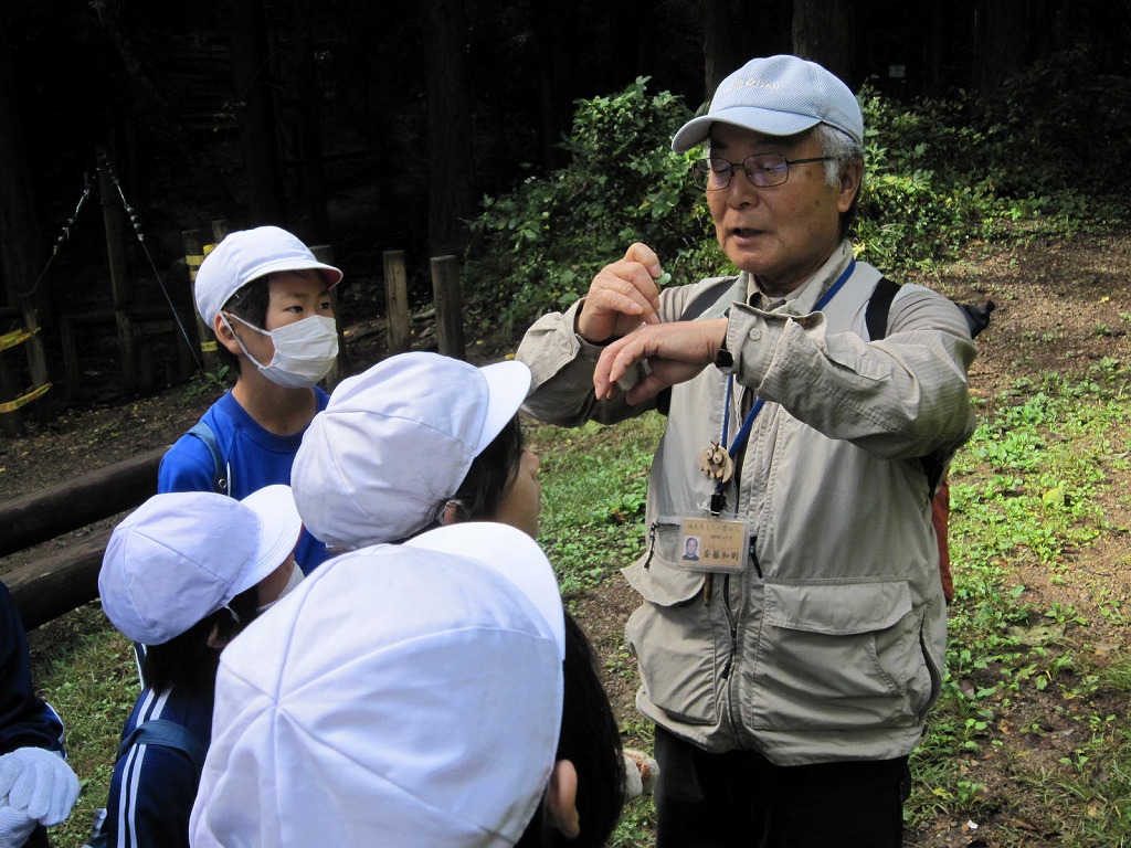 もりの案内人である講師の方々が、雨天時の状況を事前に確認してくださっていました。フィールドワークでは、児童も引率者も安心して雨天時の森林を歩く楽しさを味わうことができました。