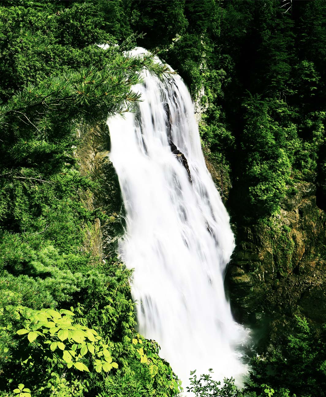 At the Usagi-tashiro junction, visitors can choose a route that goes around Sanjo Falls or a detour route with little difference in elevation. Sanjo Falls is the route to go if you have enough energy in your legs. The 100-meter-high waterfall flows directly from Ozegahara Marsh to Tadami River.